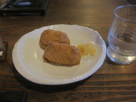 18:03 注文は で、ほうとうだけじゃ足らないかなと思って注文したいなり寿し。 お品書きの値段を見て、「大きいですか?」って聞いたら、「まあまあ」と言うので、躊躇しつつ頼んでみました。 が、大きさは普通でした。 ( ̄▽ ̄;) (コスパ悪し。)(笑) |
