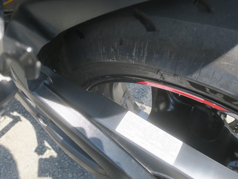 9:45 チェーンオイルが 水分を補給しながらバイクを眺めていたら、リヤタイヤの左側にチェーンオイルが飛び散っていました。 暑くなってオイルが柔らかくなって飛びやすくなりました。 オイルを塗布しすぎかな。 |