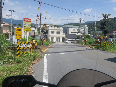 10:22 御殿場線の 足柄峠で静岡県に入り、それまで走ってきた県道78号御殿場大井線から県道365号金太郎富士見ライン線に入り、山を下り、小山町の御殿場線の踏切までやってきました。 ここを道なりに進むと小山町の町役場の前を通過します。 |