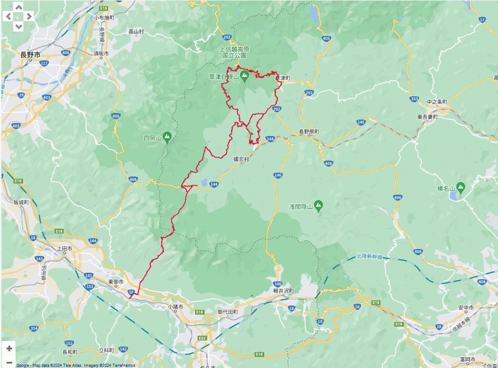 | 午後の道程:東御市(ふるさとの草笛)〜湯ノ丸高原〜嬬恋パノラマライン〜万座ハイウェイ〜草津白根山〜嬬恋パノラマライン〜湯の丸高原〜東御市:148.77km | |