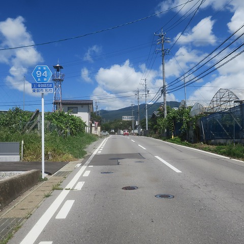 11:43 長野県道・群馬県道94号東御嬬恋線(とうみ つまごい せん)で ふるさとの草笛を出発して、国道18号線を経由して県道94号線に入り、上信越自動車道のアンダーパスを過ぎて北上を続けます。 暑いけど、メッシュのジャンバーと接触冷感機能のアンダーウェアーのおかげで、走ってさえいれば不快感はありません。 |