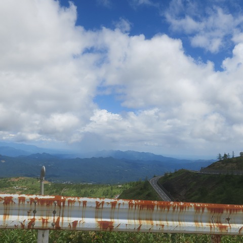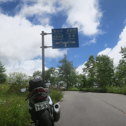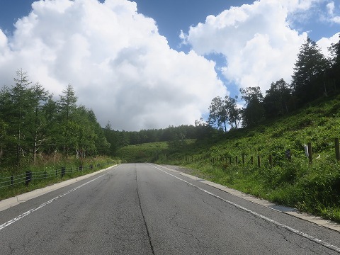 14:22 湯ノ丸高原の つまごいパノラマラインから県道94号線に戻り、湯ノ丸スキー場に向かい南下しています。 ニョキニョキ入道雲で夏空だね。 この辺りだと標高1,600mを越えてくるので、日差しが強くて暑くても快適です。 前回走った時、この辺はレンゲツツジが咲いていましたが、今はありません。 レンゲツツジの木を知らないので、花が咲いていないと、気が付かずに通過してしまいます。 湯ノ丸スキー場のある地蔵峠を越えると、県道94号線は群馬県の嬬恋村から長野県の東御市に入ります。 |