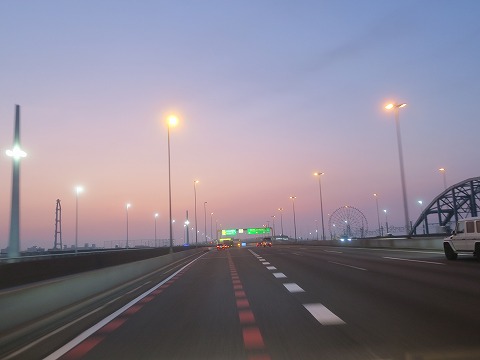4:57 葛西JCTで夜明け 横須賀の自宅を出発して、いつものルートで首都高速に上がり北東に走り、葛西JCT近くまでやってくる頃には、辺りが明るくなり始めました。 今朝は少し霧がかかっている感じで、ぼんやりと東の空がオレンジ色に変わっていく感じで明るくなってきました。 |