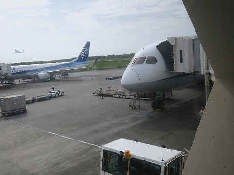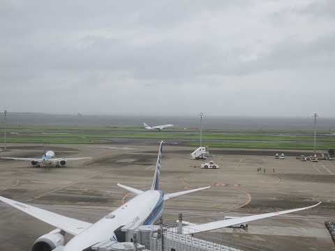 10:35 展望デッキで カバンを預けて身軽になったら5階にある展望デッキに。 出発までの時間に余裕があるので、飛行機でも眺めようかと。 でも、外は霧雨が降ってるのよ。 早々にビルの中に戻ります。 以前はね搭乗手続きとかのギリギリの時間に来るのが、慣れていて勝手を知っている風でカッコいい。とか思っている時期もありましたが、今はね。 今は余裕があったほうが楽だなぁ。って思うようになりました。 なんて、どうでもいい話。 |