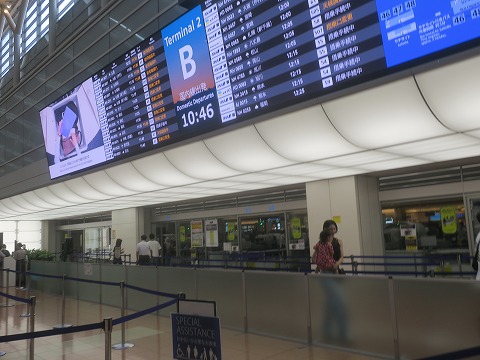 10:46 出発ロビーへ 出発ロビーのある2階に下りてきました。 フロアーをうろうろしていても仕様がないので、セキュリティーチェックを済ませて搭乗手続きをして中に入っちゃいます。 中に入ったら搭乗ゲートに移動して、パソコンをいじって搭乗までの時間を潰します。 |