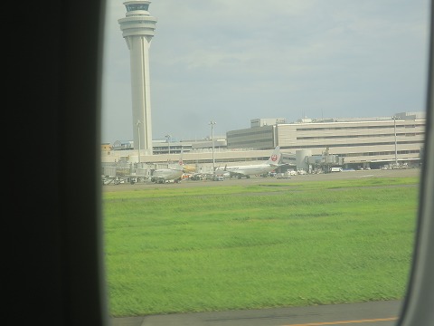 15:13 ようやく到着 無事に着陸したけど、駐機場が一杯で、駐機場の手前で待機。 20分以上待って、ようやく飛行機を下りることができました。 予定時刻より30分以上遅れての到着です。 お昼食べてないので、お腹が空きましたよ。(笑) |
