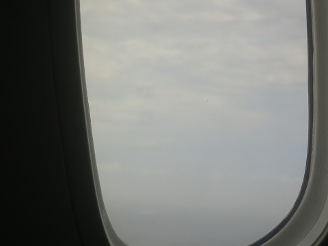 12:29 曇り 離陸したら、早々に高度を上げていきます。 曇り〜。 下界の景色は見えません。 |