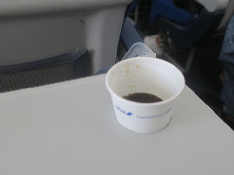 13:01 機内サービス 高度を上げて、水平飛行に移り、飛行が安定したら、機内サービスの飲物。 お昼時ですが、昼食は出ません。 もはや、国内線は食事は出ないのか? お腹が空きました。(笑) |