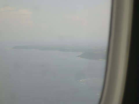 12:29 ようやく離陸 ようやく離陸の順番が廻ってきました。 滑走路に入ると、エンジンを全開。 定刻の45分遅れでの出発になってしまいました。 今日は風がかなり強くて、窓から見える草も横倒しになっているのが分かります。 先に離陸していった飛行機も、機首風上に向け右に15°ほどドリフト状態で飛び立っていきました。 |