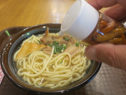 15:41 味変 ざっと食べたら、途中で味変でコーレーグースを添加。 コーレーグースは島唐辛子を泡盛に着け込んだ辛み調味料です。 泡盛を使っているからかな、好みもあるので、少しづつ入れてみるのがお薦めです。 自分は好きなので、最初からある程度入れちゃいますが。 コーレーグースを加えると、味が引き締まって美味しいです。 |