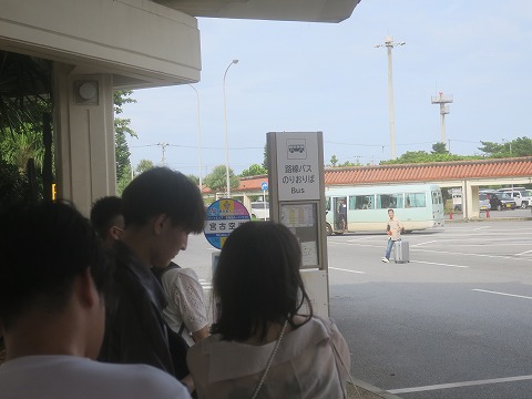 15:50 空港からは 昼食を食べたら、宿泊先に移動します。 空港からの移動はバス。 今回の宿泊先は宮古島の市街地にしました。 (当然、事前予約です) 宮古空港から市街地まではバスで20分ほどの距離です。 近いです。 徒歩だと5kmほどの距離、歩けない距離じゃありませんが、大きなバッグを持っては無理かな。(笑) google mapのルート案内で調べて、予定のバスを待ちますが、来ません。 バス停にある時刻表を見ましたが、時刻表がよくわかりません。 |