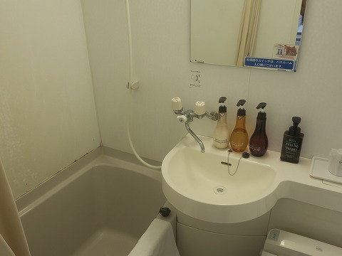 16:26 バスルームをチェック このホテルは大風呂はありませんので、バスルームをチェック。 問題ないレベルですが端っこの方にサビが浮いていたりして、ホテル自体は新しいものでは無いのがわかりますが、きちっと清掃してあります。 一般的なトイレ併設のユニットバスです。 ユニットバスは最近のものよりやや大き目でゆとりのあるサイズでした。 アメニティもひと通り揃っていて、消耗品の歯ブラシや髭剃りなどは、ロビーに置いてあるものをセルフで持ってくるシステムになっていました。 |