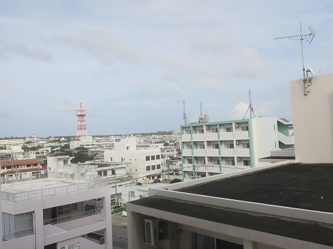 16:27 窓からの眺めは 窓は狭くて、両開きタイプでは無くて、”たてすべり出し窓”っていうタイプ。 (と書いても分らないと思いますが) 少し開きますが、全開にならないタイプの窓です。 (泥酔しても、窓から転落する心配がありません) (+_+) 部屋の窓から外を眺めると、市街地が広がっています。 高層の建物はありません。 廊下を挟んで反対側の部屋だったら、少しは海が見えるのかな。(未確認) |