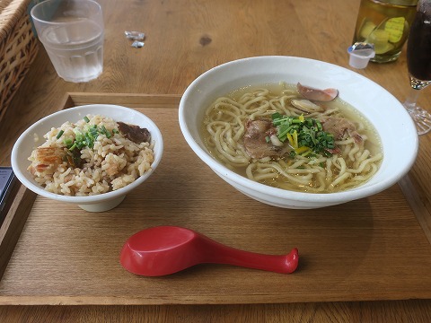 宮古島滞在2日目は、レンタルしたスクータで宮古島と来間島を走りました。 昼の時間を少し過ぎて、昼食にありつきました。 訪れたお店は、オリーブの樹。 食べたのは”そばセット”。 ステーキ(?)とか(宮古)そばが食べれれるお店です。 |
