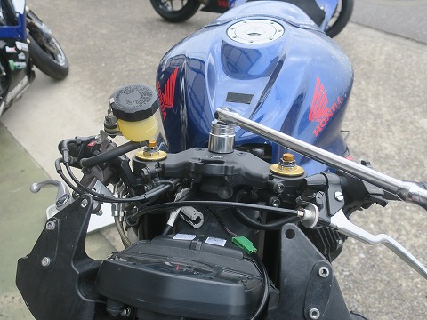 16:32 戻してく 三又は組んだので、TZのレーシングスタンドは外して。フロントのレーシングスタンドに付け替え。 ステアリングダンパーのボルトをトップブリッジに取付け。 その後、フロント フォークを再度緩めて締めなおし。 フロントタイヤを取付けたら、終わり間近。 |