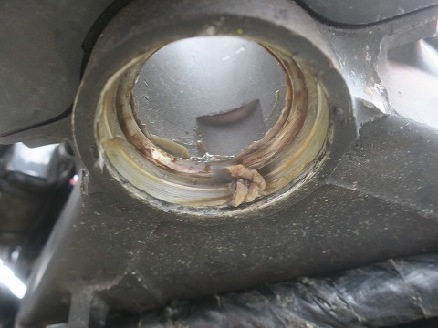14:49 ロア インナ レースを ロア インナ レースを外しました。 外すのは、隙間にタガネとか使って慎重に外していきます。 斜めになると、ステムを傷つけるので注意です。 写真だと、一足飛びですが、圧入されているので、外すの結構大変です。 |