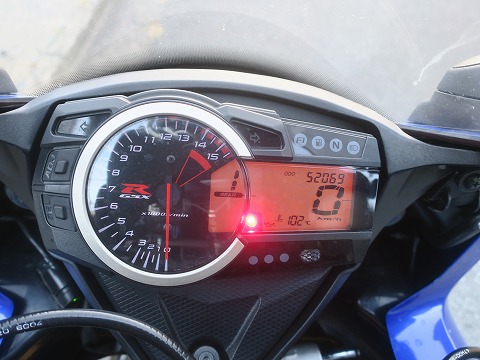 前に乗っていたYAMAHA のYZF-R1のときは燃料タンクが小さくて、無給油では忍野まで往復できませんでしたが、今乗っている GSX-Rだと途中給油ナシで往復できます。 楽です。