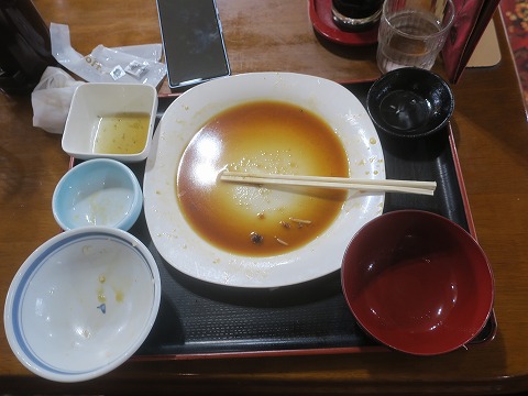 12:49 ご馳走様です。 ご飯は無料で大盛りに出来ましたが、初訪問のお店で知らないで大盛りを注文するのは危険と判断して、普通盛りでお願いしました。 (年齢を重ねて、臆病になりました)(笑) 普通盛りでも十分な量はあったんですが、ちょっと足らなくてね、半分お代わりをお願いしました。 う~ん。 完璧、完食。 「ご馳走様でした。」 「旨かったです。」 |