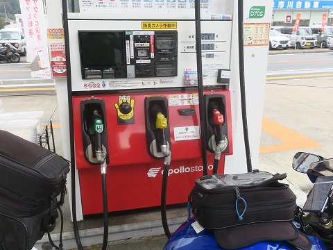 14:13 ガソリン給油2回目 の前に、ガソリンを給油。 明日予定しているルートだと、給油しておかないとガソリンがショートしそう。 中野市の市街地にあるapollostationで自分だけ今日2回目の給油をします。 ハヤブサもKTMも、GSX-Rより足が長いんですよねぇ~。 |