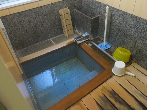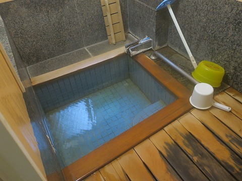 7:08 部屋風呂に 朝食は8時から。 時間があるので部屋風呂に入っておきましょう。 部屋風呂はちょっと熱め。 流れ込んでいる源泉自体は熱々なのですが、湯量はそれほど多くはないので、いい具合に冷えて、加水しなくてもそのまま入ることができました。 |