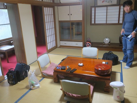 14:52 ちょっと速い 部屋に入ります。 タグロンさん着替えるの速すぎぃ。(笑) とりあえず、部屋の写真を撮っておきます。 部屋は離れの12畳、3人で十分な広さがあります。 部屋にはトイレもあって、温泉もあります。 今回予約の時に、温泉付きを選んで予約したわけではありませんが、付いてました。 特に値段も追加されることはなかったので、ラッキーでした。 |
