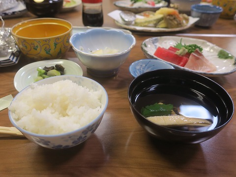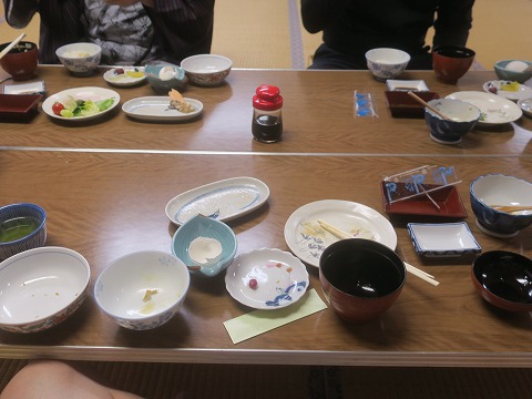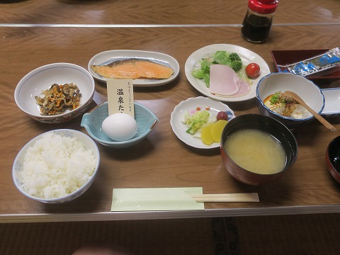 7:58 朝食です 8時のちょっと前に宿からの電話で朝食の時間です。 朝食も昨晩と同じ大広間で。 朝食も、標準的な和食かな。 ただ、納豆がないな。(笑) それでは、「いただきます」 |