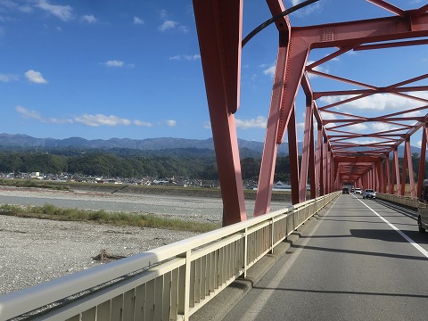 12:49 天竜川を渡って まずは、今いる国道143号線から国道142号線に戻るのに、google mapの行先に以前訪れたことのある上村程野の蕎麦屋さん”村の茶屋”を入力。 google 先生にルート案内を任せます。 まず、国道153号線を離れたら阿島橋で天竜川を渡ります。 |