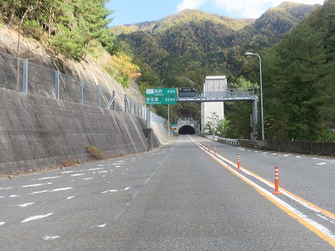 13:07 三遠南信道で 県道251号線を南東に進むと、三遠南信道の矢筈トンネルの入口までやってきました。 この先の県道の赤石隧道区間は災害復旧のため通行止め。 その手前から、三遠南信道が接続されているので迂回することができます。 ただし、三遠南信道自体が自動車専用道のため、歩行者とか自転車とか、原付二種も通行することができません。 なので、自分のGROMも通行不可ね。 なので、三遠南信道を通行出来ない車両は、三遠南信道を使えばわずか7kmほどの距離を約70kmほど遠回りしないと、反対側まで行くことができません。 |