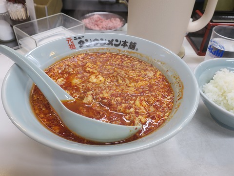 19:24 夕食は 阪井輪業を後にして、夕食は横浜の根岸にある”ニュータンタンメン”。 大辛のニンニク ダブルが自分の好み。 これを食べちゃうと、次の日ニンニク臭をバラまくので、予定の無い休みの前日だけね。(笑) 大辛で真っ赤な色をしてますが、(タイ料理に比べれば)それほど辛くないです。 |