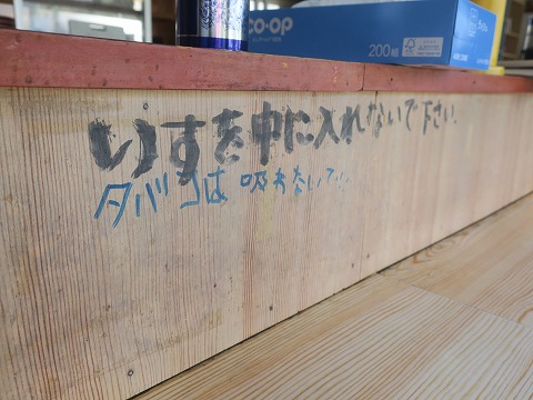 11:23 カウンターの壁には マジックで 「いすを中に入れないで下さい」 「タバコは吸わないで」 直筆。(笑) いすはね、足元に足安めが置いてあるからかな。 よくわからんけど。 |