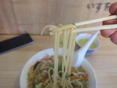 11:35 食す それではお決まりの箸上げ。 正統のちゃんぽんらしく、太麵。 それでは、「いただきます。」 うん、うまい。 ちょっとしょっぱいですが、スープに野菜の味が出て、美味しいです。 |