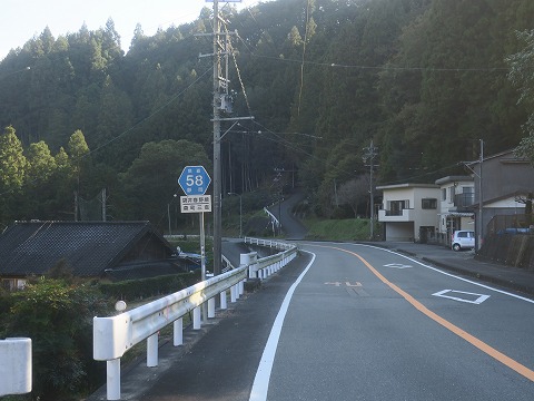 13:34 静岡県道58号袋井春野線(ふくろい はるの)へ 道の駅で休憩した後、8kmほど国道362号線を戻ります。 青看板のあるこの先の交差点を右折して、県道58号袋井春野線に入ります。 |