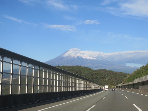 14:47 富士山が 森掛川インターから新東名高速道路に上がり東進。 森町~掛川市~島田市~藤枝市、静岡市を通過し富士市までやってきました。 目の前に富士山が拡がります。 11月3日のツーリングの時は、まだ冠雪していませんでしたが、流石にもう上の方は冠雪していますね。 それでも、南斜面には地肌が見えるあたり例年に比べると、雪は少ない様に感じます。 |