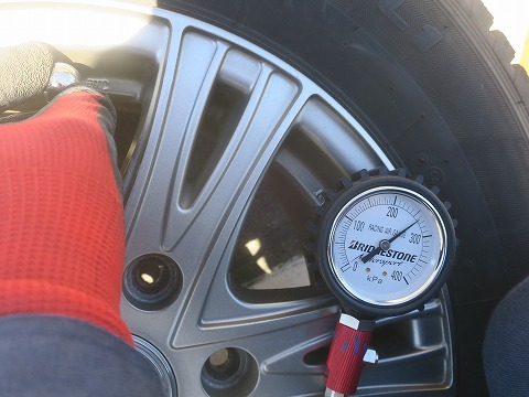 10:25 エアー圧を確認 今のエアー圧は、260kPa。 去年、このスタッドレスに入れ替えるときに空気を入れて、そのまんまなので、1年で 325→260kPa に下がりました。 スタッドレスを履いている期間は約4箇月、1年の1/3くらいなので、使っている期間の2箇月に1回くらいはエアー圧の確認をした方が良さそうですね。 前回と同じ様に、前後とも 325kPa に再調整しておきます。 |