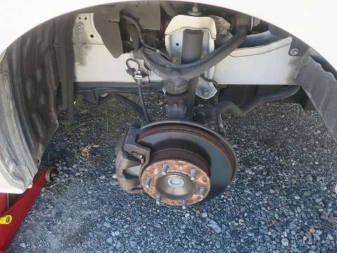 11:05 左後ろ 続いて、左後ろ。 これはまだ夏タイヤを外す前ですね。 タイヤをジャッキアップする前に、少しだけボルトを緩めておきます。 少しだけね。 |