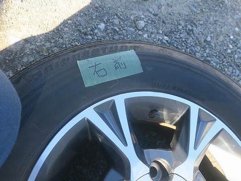 10:53 スタッドレスを スタッドレスを取り付けました。 養生テープに貼ってある様に、前回は”左の後ろ”に履いていたやつです。 このタイミングでローテーション。 |