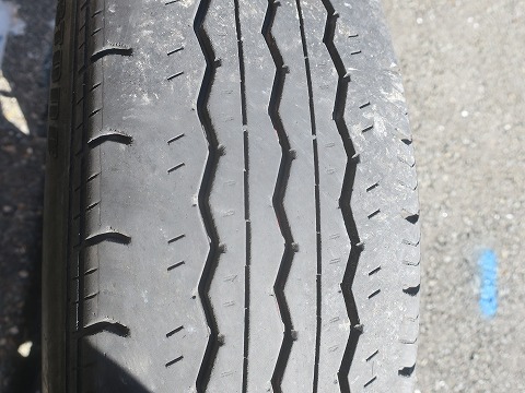 11:26 外した 夏タイヤ。 60,000km超使って肩の部分が、かなり減りました。 真ん中部分の山はまだまだあるんですけどねぇ。 真ん中部分の溝を計ると4.5mmくらい残ってます。 法律的には大丈夫ですけど、雨のカーブとか滑るんですよね。 でも、勿体ないから肩の部分の溝が無くなるまで使うかな。 |