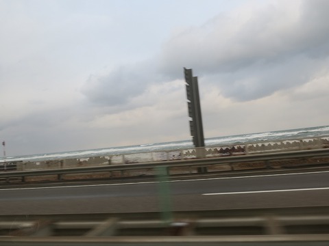 8:22 日本海に沿って 金沢西 ICから上がり、北陸道で白山市の辺りを南下中。 右手に白波を立てた日本海。 風が強くて、ハンドルが取られます。 |