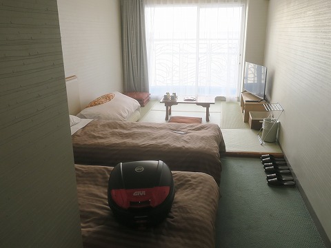 15:46 部屋は 部屋は2シングルベット、プラス畳敷きの居間スペースの和洋折衷の造りです。 基本、温泉地にあるホテルなので、完全なシングルルームの造りは無い様で、ツインルームのシングルユースになります。 それでも、1人分の利用料金なので、一人で泊まるには、普通の温泉旅館をシングル ユースするよりも断然お得です。 |