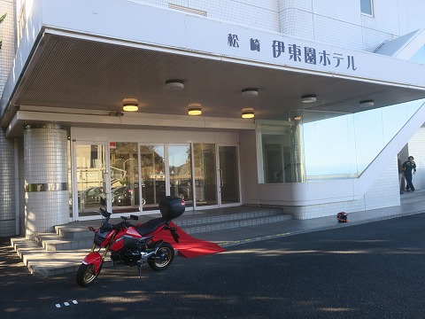 9:01 出発 9時になったのでチェックアウト。 ホテルの前にGROMを移動して、写真を撮ったら出発します。 (つづく) |