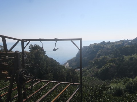 写真に写っているのは、斜面で獲れたミカンを運搬するためのロープウェイとでもいうのかな。