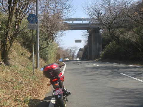 12:31 山伏峠(やまぶし とうげ)に 県道80号線を相模湾に向け東進して、山伏峠までやってきました。 上を走っているのは、伊豆スカイライン。 ちょっと手前に山伏峠 ICに接続すr道があるんですが、道路脇にちっちゃい看板が出ているだけなので、見逃しがちです。 ただ、伊豆スカイラインは自動車専用道なので原付二種は通行できません。 ここまでの県道80号線は、全線センターラインのある片側1車線で山伏峠に向かって緩い登り勾配の県道です。 曲がりの浅い中低速〜中速コーナーを直線で結んだ様な路線です。 エンジンパワーの無いGROMでは、登り坂でペースが上がりません。 ペースのいい大排気量のクルマだと、煽られます。(笑) |