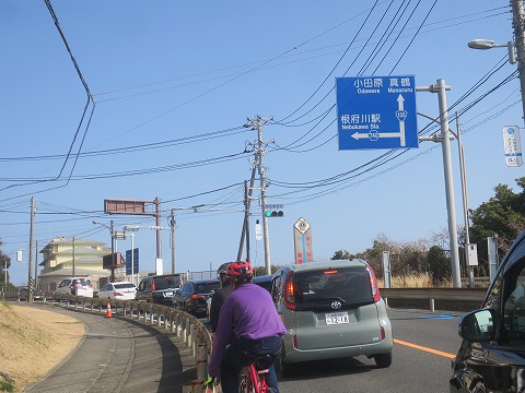 12:40 相模湾側に 県道80号線を下り、海岸線を走る国道135号線の下多賀のT字路まで下りてきました。 左折して、小田原、湯河原方面に進みます。 まだ、時間的に早いですね。 |