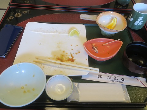 12:10 ご馳走様です。 途中の写真が無いね。 大勢で食事をしていると、撮り忘れる。(笑) 言わずもがな、完食。 仕出しをやっている日本料理店らしく、上品な味で美味しかったです。 ただ、他のメンバーが頼んだ杜仲うどんが、思いのほか美味しそうに見えました。(笑) ので、次回訪れることがあれば、杜仲うどんの入ったメニューを頼むことを忘れずにいよう。 「ご馳走様でした。」 <(_ _)> |