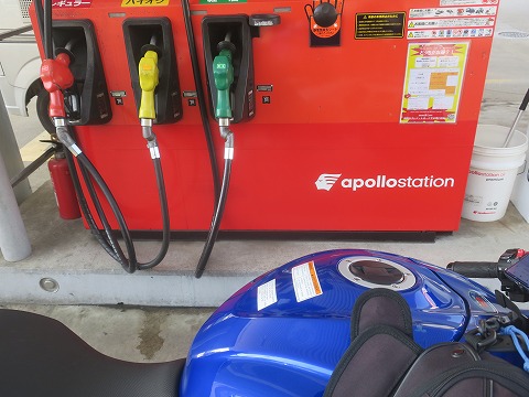 ガソリンを給油 自宅を出発したら、前回のツーリング終わりに給油していなかったので、まずは葉山にあるapollostationでガソリンを給油。 ガソリン価格が強気な三浦半島なのでリッター200円。 出来れば入れたくないけど、仕様がない。 |