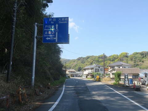 10:42 戸田漁港のある交差点を 戸田の市街地まで下りてきました。 この先の交差点で左折して県道17号線に復帰し、土肥(とい)方面に進みます。 |