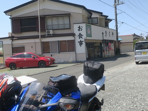 11:31 今日の昼食は 国道136号線を南下して松崎の市街地に。 その後、google 先生の言うことを聞いて、脇道へ。 今日、お昼を食べようと考えていた”きくや食堂”に到着しました。 砂利の駐車場にバイクを駐めて、お店に向かいましょう。 (つづく) |