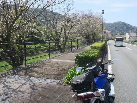 1216 那賀川沿いに 桜並木までやってきました。 ここは松崎の市街地を流れている那賀川の河岸です。 近くまできてみると桜の花はかなり散ってました。 満開の時期なら、さらにきれいだったでしょうね。 |