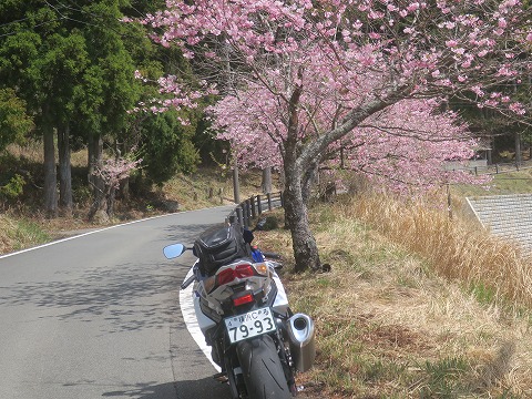 12:52 路傍の桜 県道410号線を登ると途中で何本かの桜が咲いていました。 さっきの松崎の桜より、標高が高い分、開花時期が遅いようで、まだ多くの花が残っていました。 |