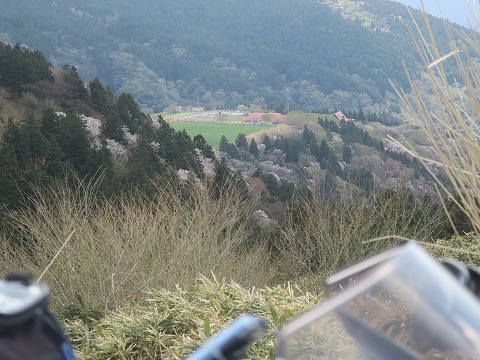 13:01 春感 仁科峠から今登ってきた方向を見ると、所どころに桜の花が咲いていますね。 ボヤっとした空気が春感を醸し出しています。 |